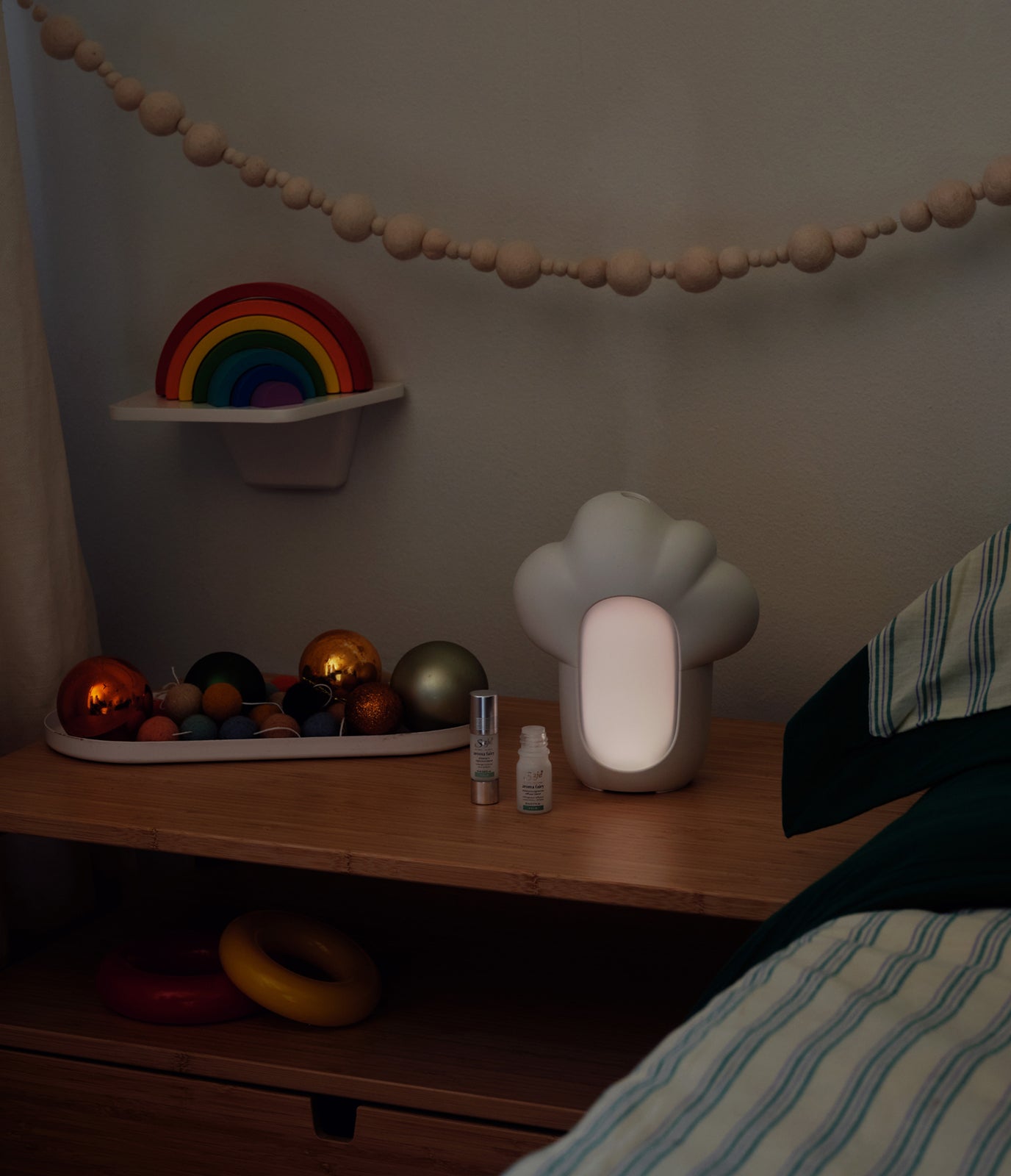 Our first kids’ diffuser combines ambient sound, light and mist to cue a peaceful bedtime routine.