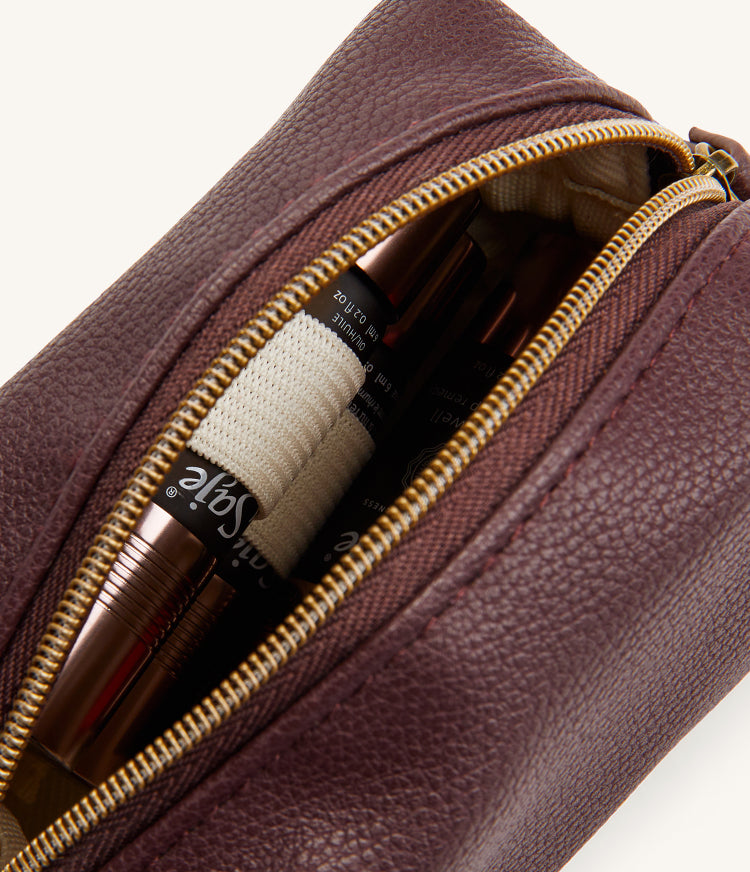Tucked in a vegan leather pouch, these minis are ready for stockings, suitcases and every stop on your holiday circuit.