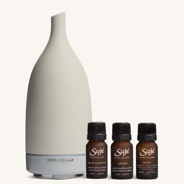 We created this best-selling diffuser bundle to help you discover the remedial power of space-care. Featuring the Aroma Om® Stone diffuser and three best-selling diffuser blends, you can tailor your environment to support your holistic wellness.
